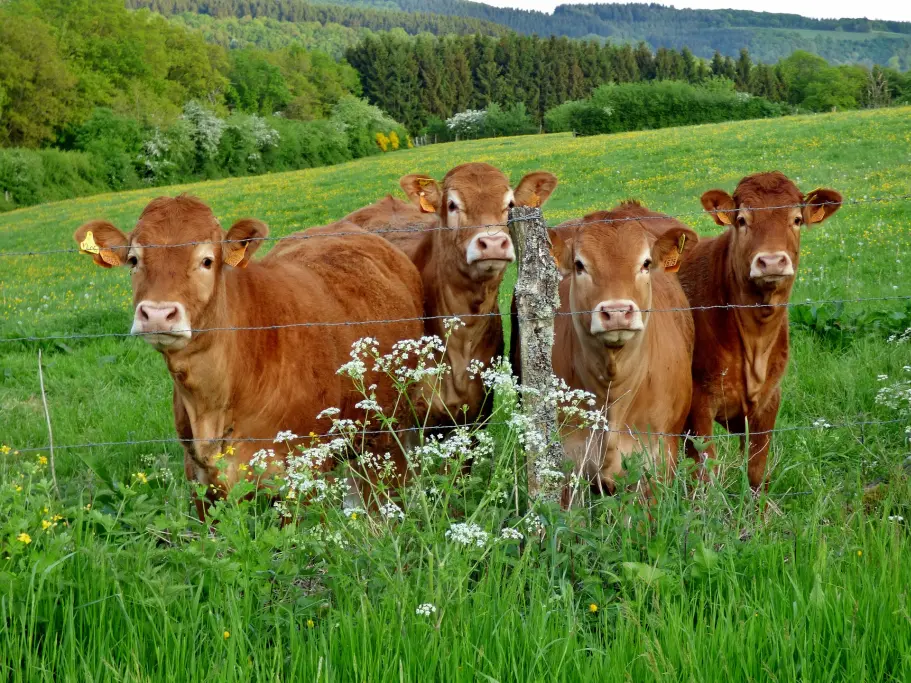 Auf einer Weide zupfen und mampfen Kühe bis zu 10 Stunden lang Gras und Kräuter. Um an die leckersten Futterstellen zu kommen, legen sie dabei viele Kilometer zurück.