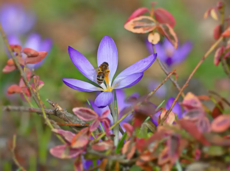 Biene auf einem violetten Krokus