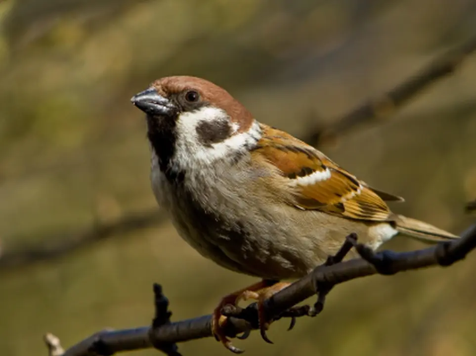 Der Feldsperling hat auf seiner weißen Wange einen dunklen Fleck.